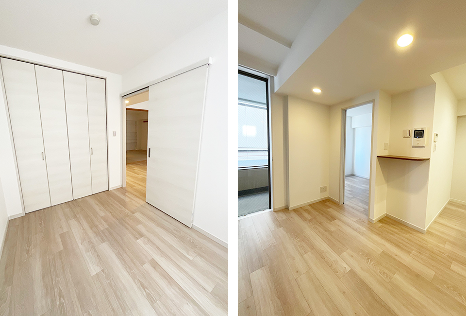 リビングや各居室も、床の上貼りやクロスの貼替、建具の入れ替えにより、空間全体がすっきりとした印象に。